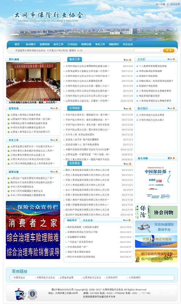 大同市保險(xiǎn)行業(yè)協(xié)會網(wǎng)站2017改版升級完成