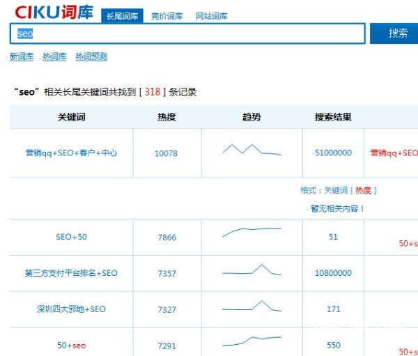 很明顯,上面的原理在這個網(wǎng)站上并沒有發(fā)揮效果,一萬多指數(shù)的關鍵詞排在第一可不是這樣的,那為什么50+seo就行,seo+協(xié)會+網(wǎng)就不行呢?原因很簡單,權重是第三方站長工具查出來的,所以這個關鍵詞一定要存在于該站長工具的詞庫,不然是沒有任何效果的。