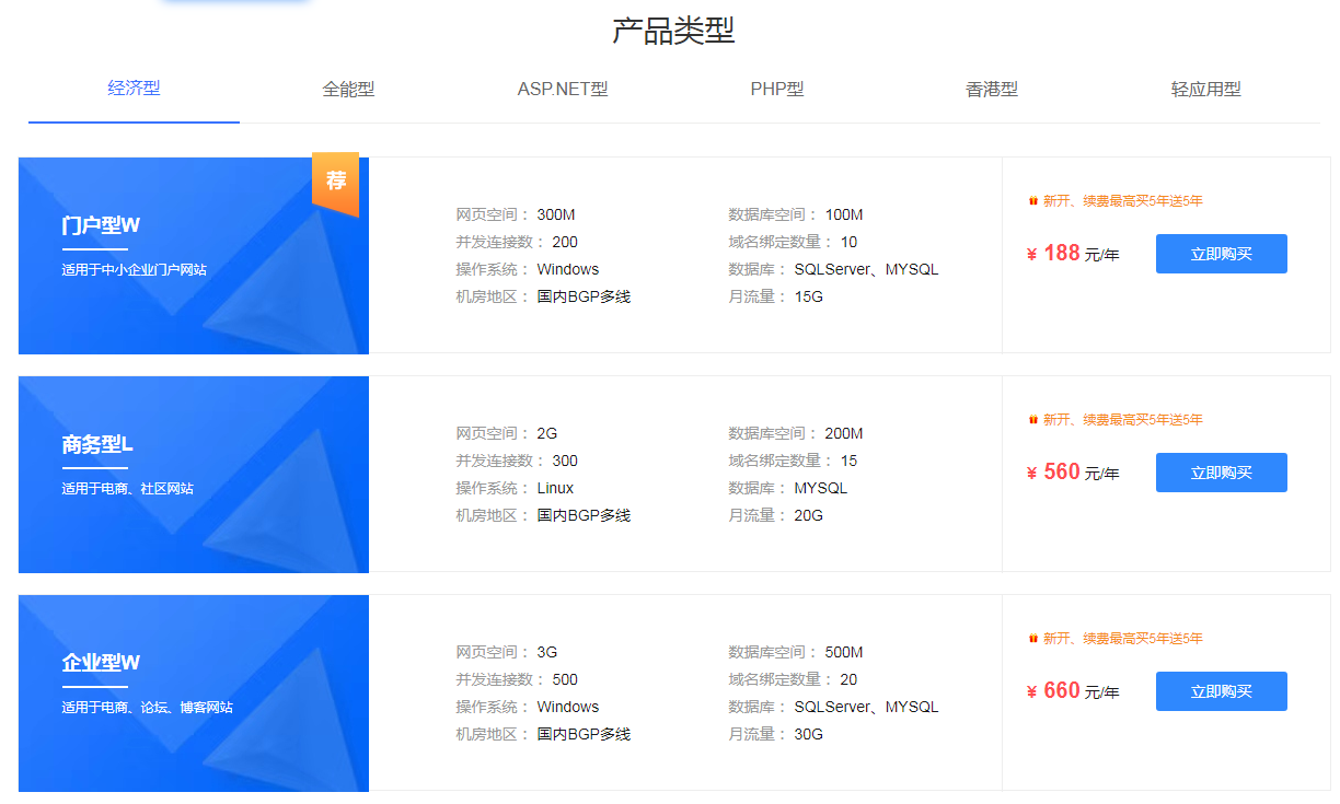 空間/虛擬主機(jī)(需每年續(xù)費(fèi))  虛擬主機(jī)商就太多了,比較大的阿里云、新網(wǎng)等等,其中還有香港主機(jī),美國主機(jī)等等,不想備案的可以選擇國外主機(jī),一般企業(yè)站,200m空間足夠,價(jià)格在200元左右。