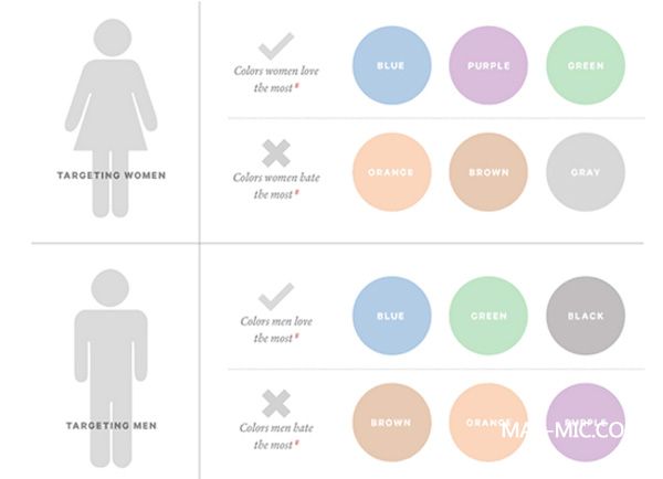 在女性用戶這邊,橙色也是相對不那么受歡迎的色彩,所以,如果你的客戶是女性的話,盡量避免這一點(diǎn)。