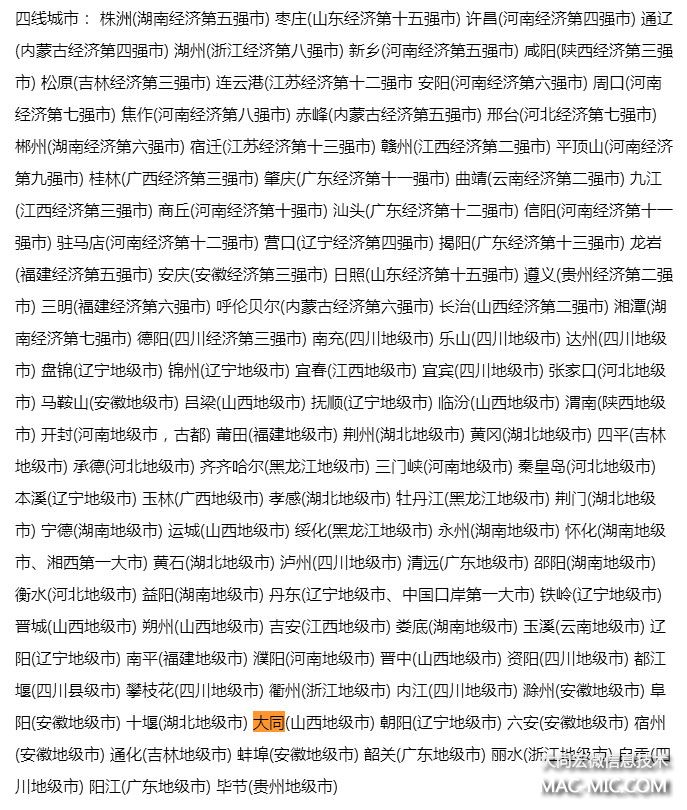 而在四線城市的末尾,將將就就的出現(xiàn)一個熟悉的名字:大同