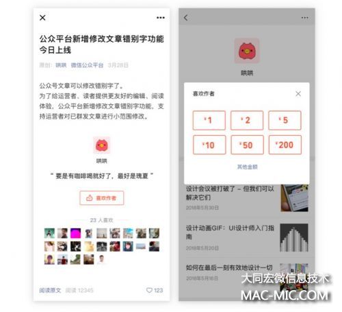 微信公眾號贊賞功能升級 作者可直接收到讀者贊賞