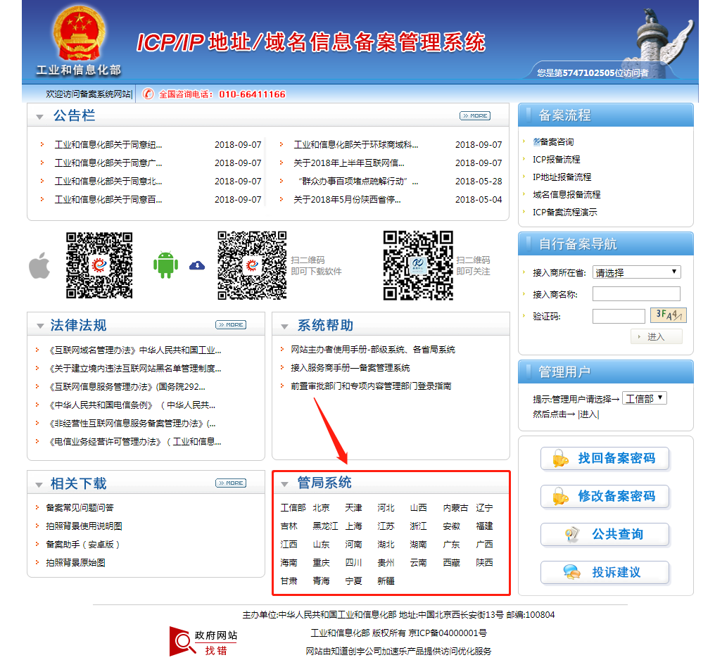 3.1、收到工信部發(fā)出的驗證碼后,訪問所在省市通信管理局網站。http://www.beian.miit.gov.cn/